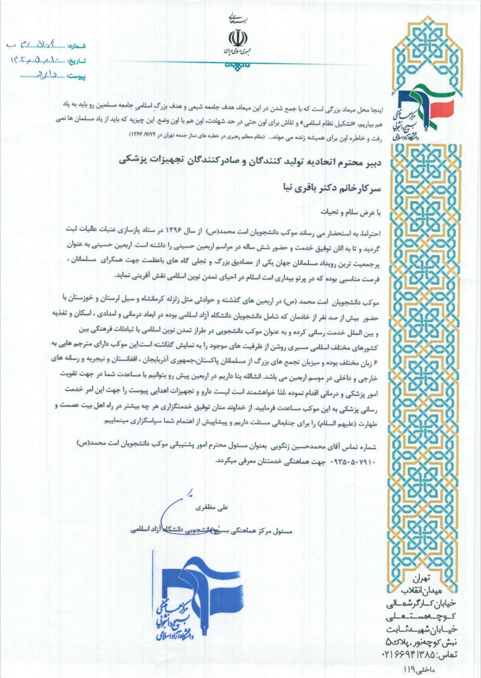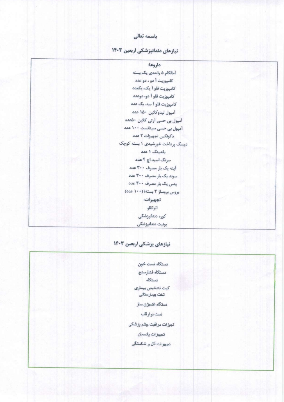 اهدا تجهیزات پزشکی به راهپیمایی اربعین دیدگاه خود را بنویسید / اطلاعیه ها / از تیم فنی isomee اهدا تجهیزات پزشکی اتحادیه تولید کنندگتن و صادر کنندگان پزشکی ایران به زائران اربعین حسینی (ع)