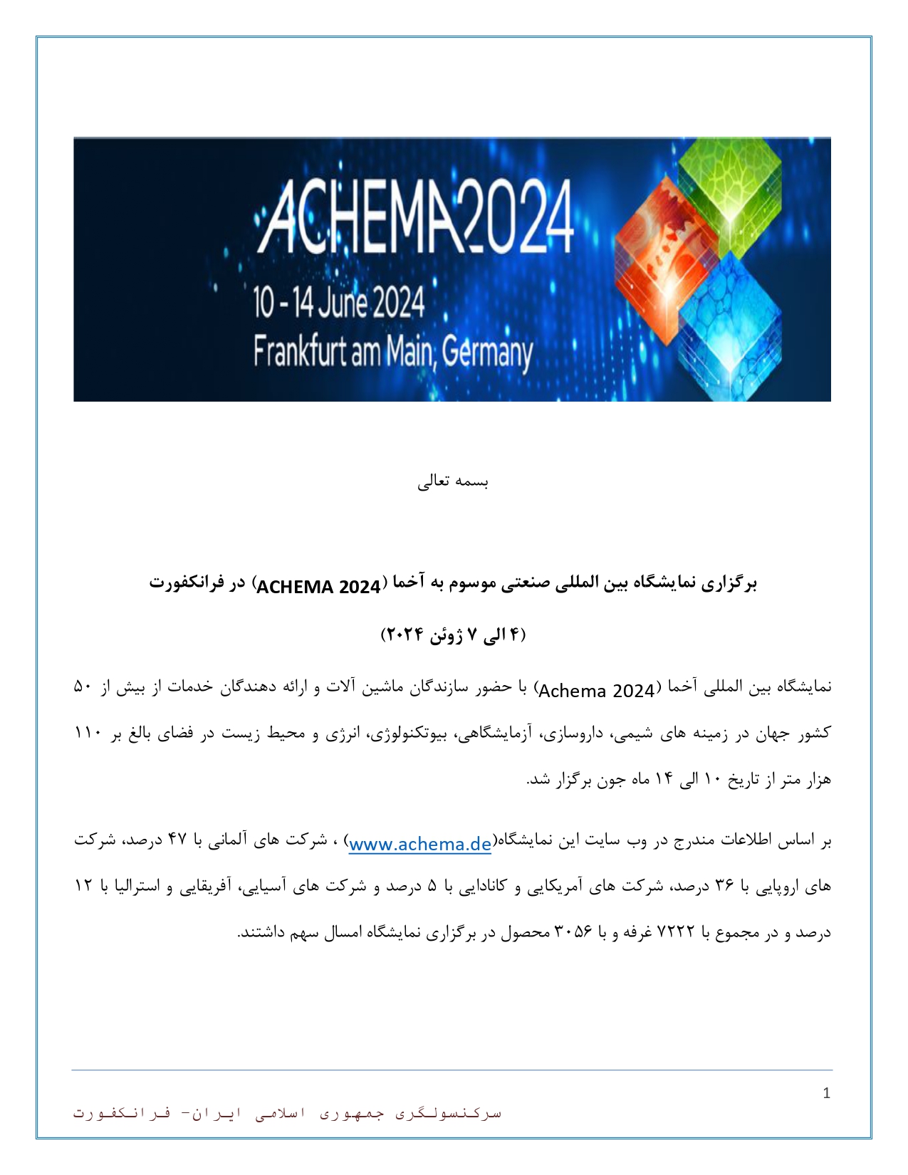 دعوت بازدید از نمایشگاه بین المللی آخما آلمان